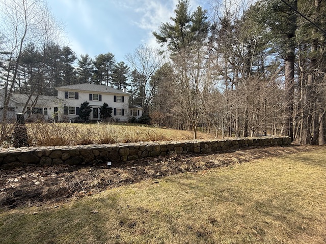 Hi, We are looking to add some low voltage outdoor lighting. We live in a pretty dark wooded area so I don't want it to be harsh or overpowering. We have a 20in tall by 80ft rock wall at the front of the property that I would like to have some soft lighting on. Would well lights 6in from the wall work? How many and how far apart should they be? Or spotlights? In the winter the area is bare (as the pictures show) but in the Spring/Summer there are a fair number of bushes and flowers in front of the wall (see last picture below). The wall is also pretty short, so not sure if lighting even makes sense here? I also wanted to uplight some trees. Would you recommend well lights or spotlights? Again I want some soft lighting but nothing harsh. We also have some tall pine trees I thought we could do downlighting in. Any recommendations on lighting for the house too would be really appreciated! Thank you!